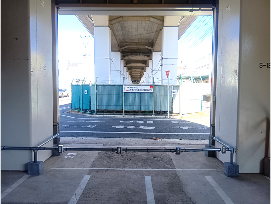 足立区谷中1丁目16-6向かい 高架下にある「トミーバイクパーキング東綾瀬公園1」です。